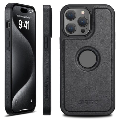 Funda Trasera Suteni G1 para iPhone 15 Pro Magsafe Cuero (Negro)