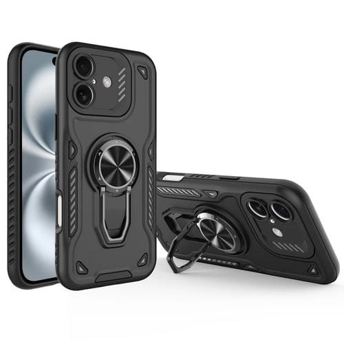 Funda para iPhone 16 Plus Soporte Giratorio Metal TPU PC Magnético (Negro)