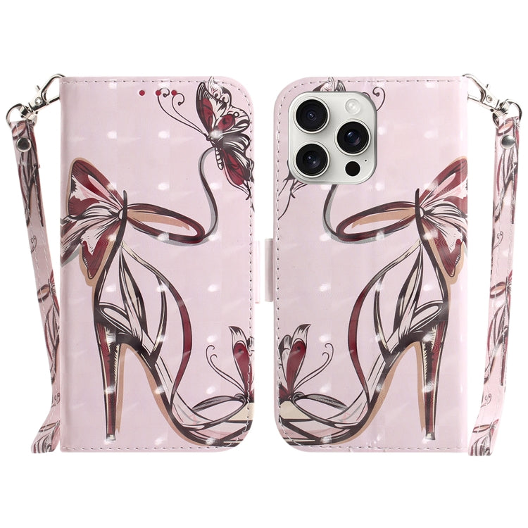 Funda de Teléfono iPhone 16 Pro Cuero con Tapa Horizontal Color 3D (Mariposa de Tacón Alto)