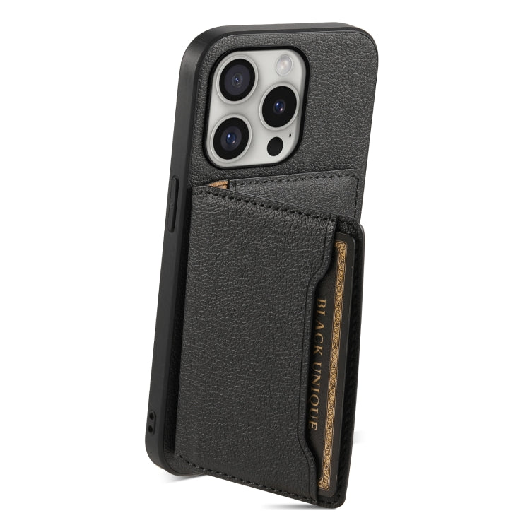 Estuche para Teléfono iPhone 16 Pro Max Diseño Bolsa para Tarjetas Textura Pantorrilla (Negro)