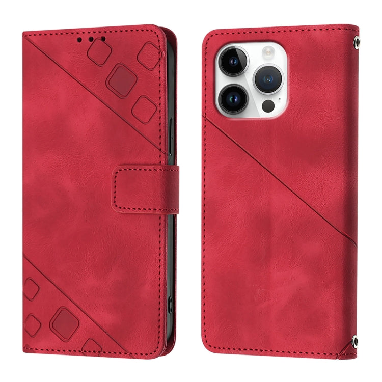 Funda para iPhone 16 Pro Max Cuero con Relieve y Sensación de Piel (Rojo)