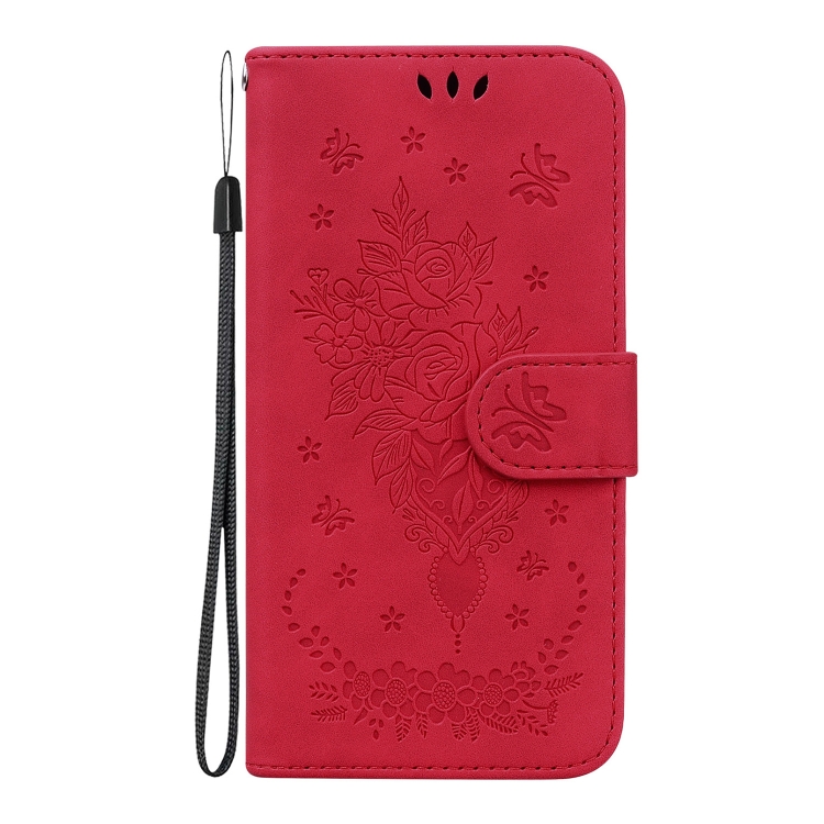 Funda para Teléfono iPhone 16 Pro Max Cuero con Relieve de Mariposa y Rosa (Rojo)