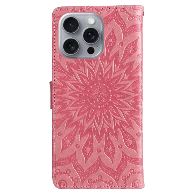 Funda para Teléfono iPhone 16 Pro Max Cuero con Tapa Patrón Girasol En Relieve (Rosa)