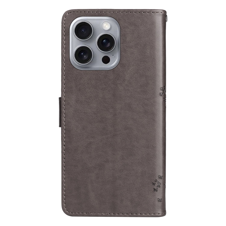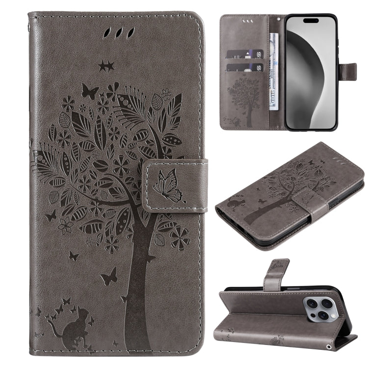 Funda para Teléfono iPhone 16 Pro Max Cuero con Tapa Patrón Árbol y Gato (Gris)