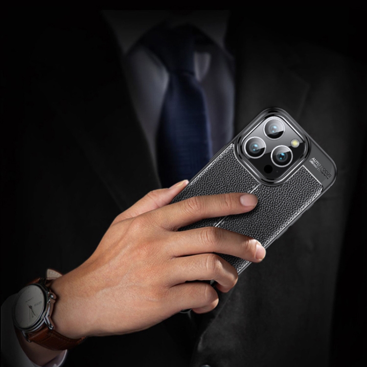 Funda para Teléfono iPhone 16 Pro Max TPU a Prueba de Golpes con Textura Litchi (Azul)