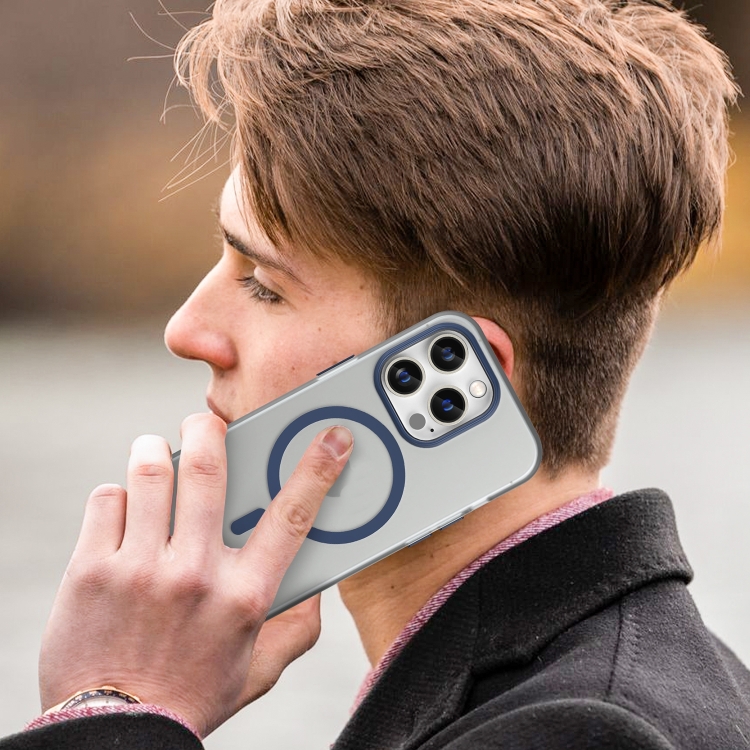 Funda para Teléfono iPhone 16 Pro Max Magsafe Frosted Translucent TPU + PC Cobertura Total (Azul Oscuro)
