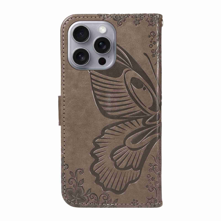 Funda para iPhone 16 Pro Max Swallowtail Butterfly Cuero En Relieve (Gris)