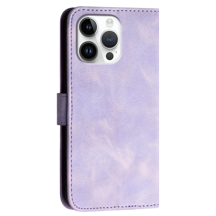 Funda de Cuero para iPhone 16 Pro Max Yx0080 con Tapa y Cordón Diseño Mariposa en Relieve y Cuadrícula (Morado Claro)