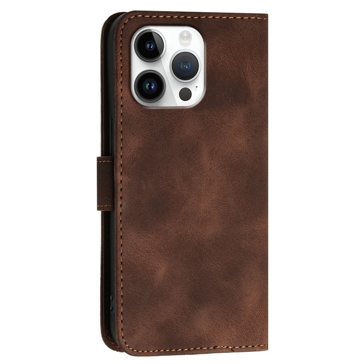 Funda de Cuero para iPhone 16 Pro Max Yx0080 con Tapa y Patrón en Relieve de Mariposas y Cuadrícula con Cordón (Café)