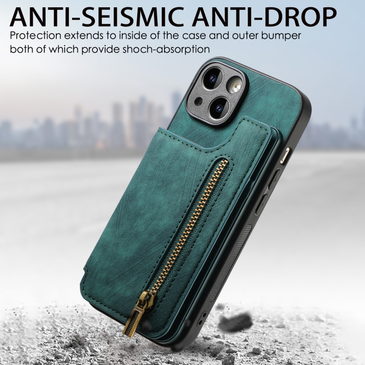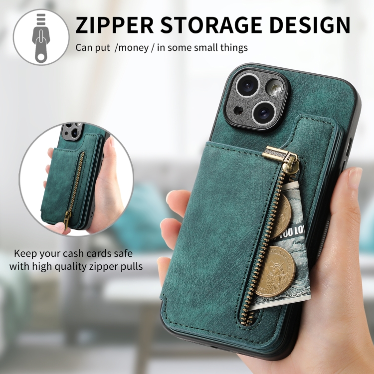 Funda para iPhone 6/6S Cuero Retro con Cremallera y Billetera (Verde)