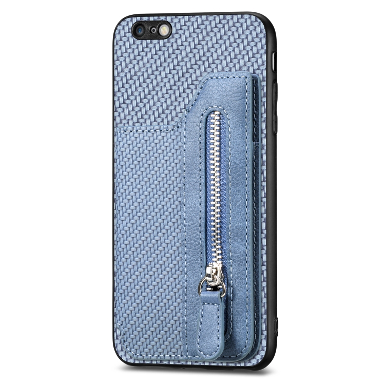 Funda de Teléfono iPhone 6 / 6S con Cremallera y Tapa Horizontal de Fibra de Carbono (Azul)