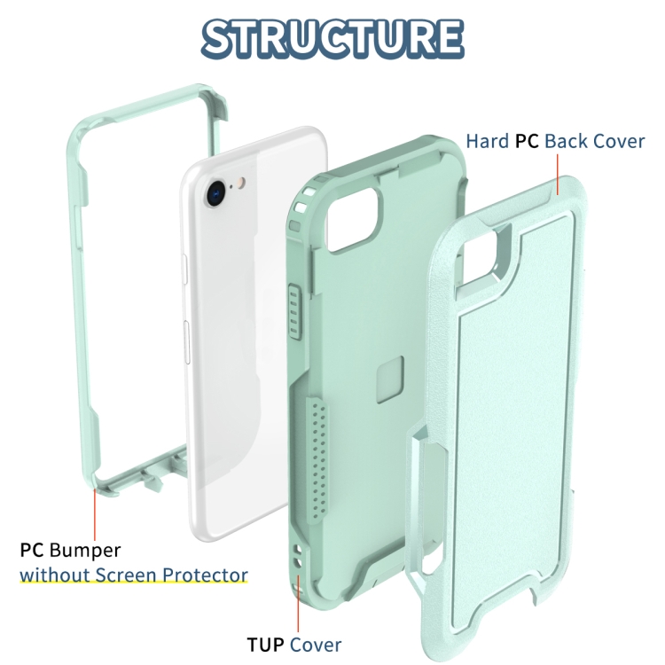 Funda para Teléfono iPhone 6 7 8 Se 2020 3 en 1 PC TPU a Prueba de Golpes (Verde Menta)