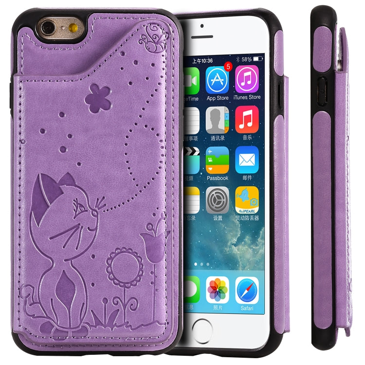 Estuche protector para iPhone 6 Cat Bee con patrón de relieve, ranuras para tarjetas y marco de fotos (Púrpura)