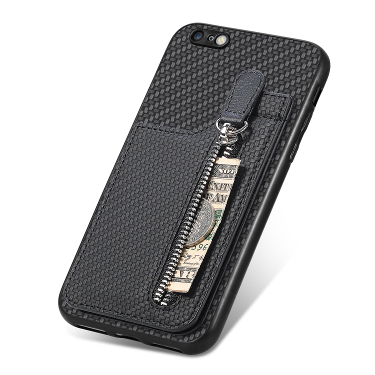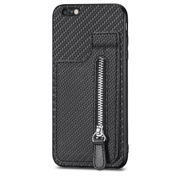 Estuche para Teléfono iPhone 6 Plus 6S Plus con Cremallera Vertical Fibra de Carbono (Negro)