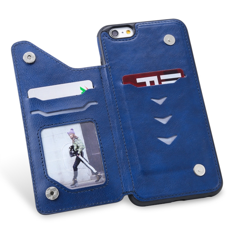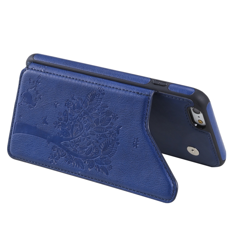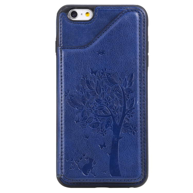 Funda Protectora para iPhone 6 Plus Cat Tree Engessing Pattern a Prueba de Golpes con Ranuras de Tarjetas y Marco de Fotos (Azul)