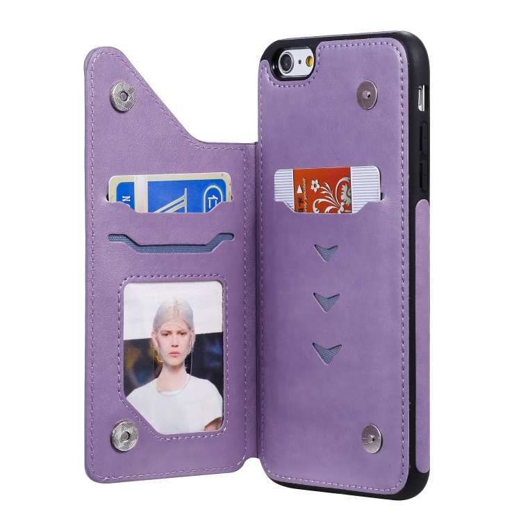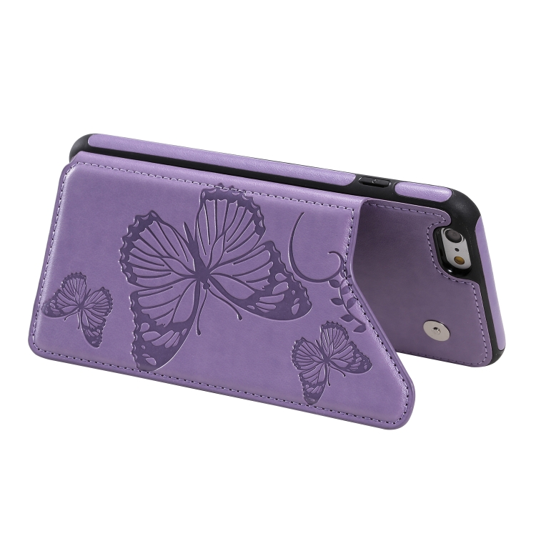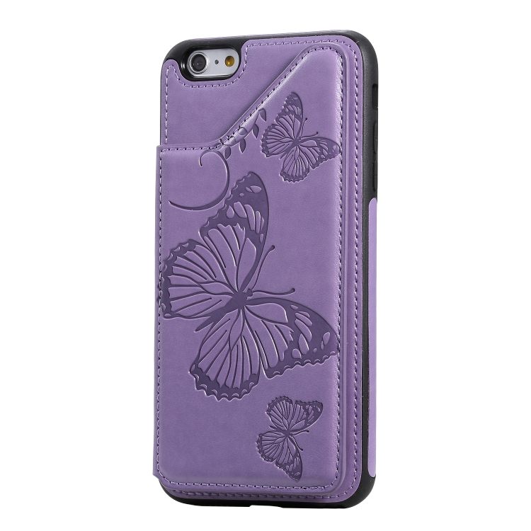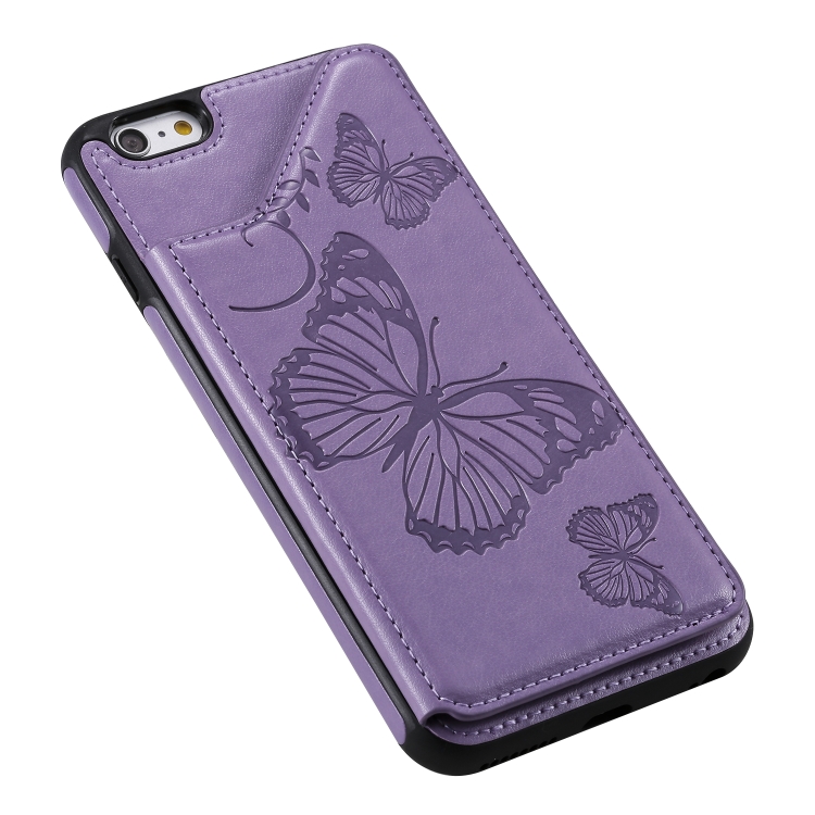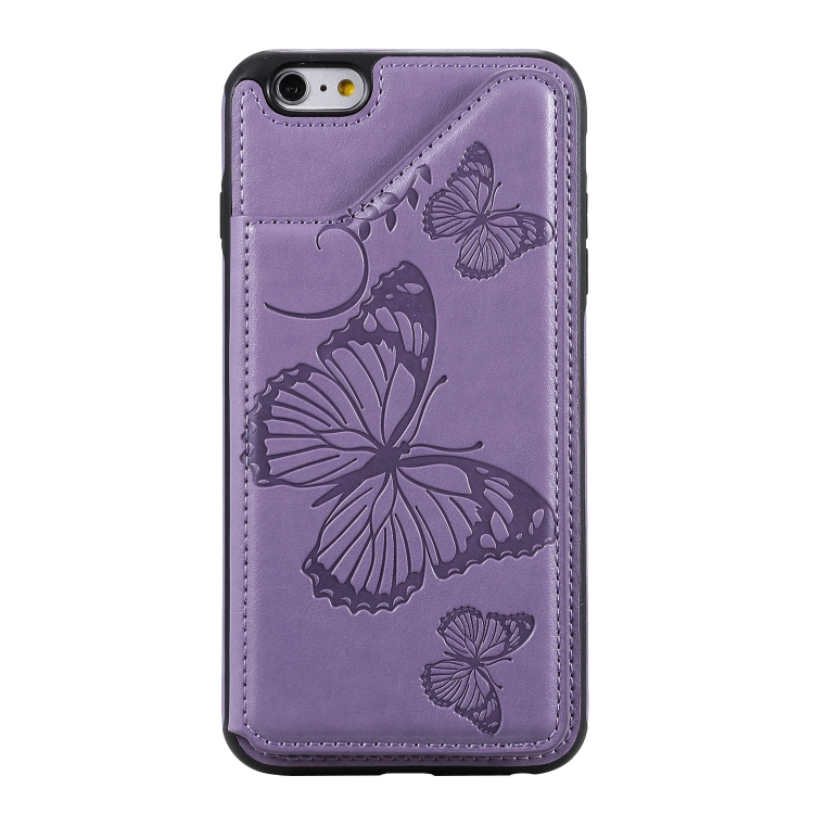 Funda Protectora iPhone 6 Plus Patrón Mariposa a Prueba de Golpes con Soporte Ranuras Tarjetas y Marco (Púrpura)