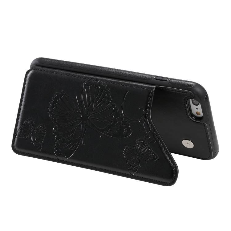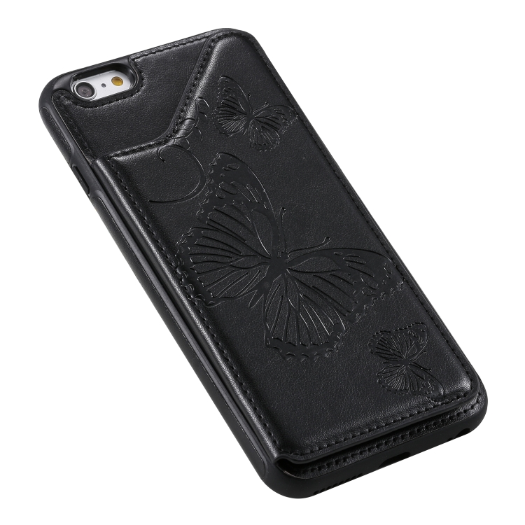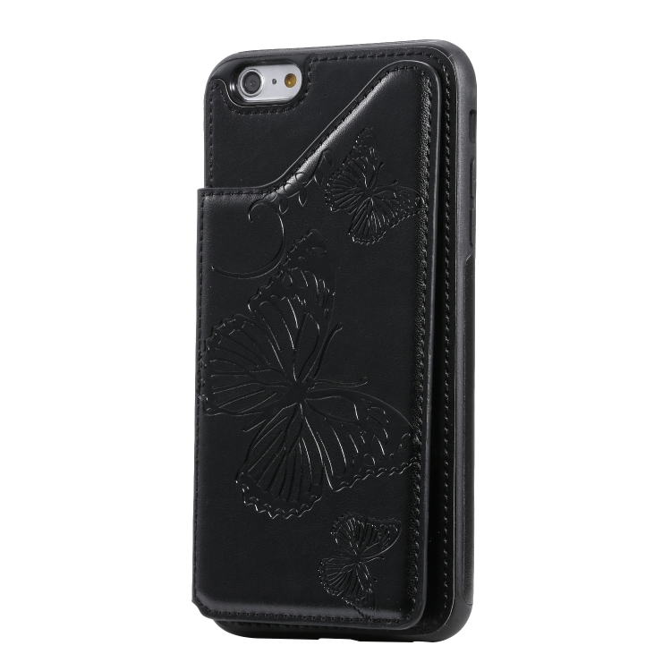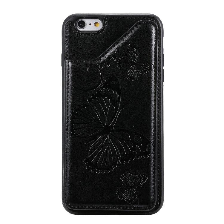 Estuche Protector para iPhone 6 Plus Patrón de Mariposa a Prueba de Golpes con Soporte y Ranuras para Tarjetas (Negro)