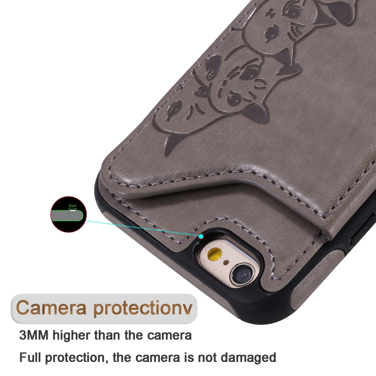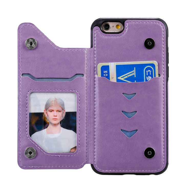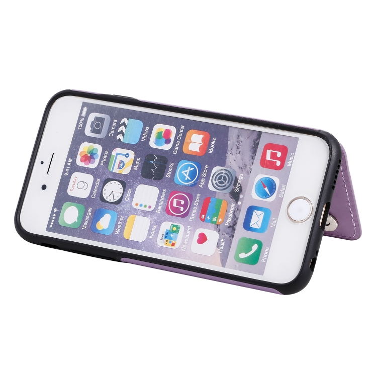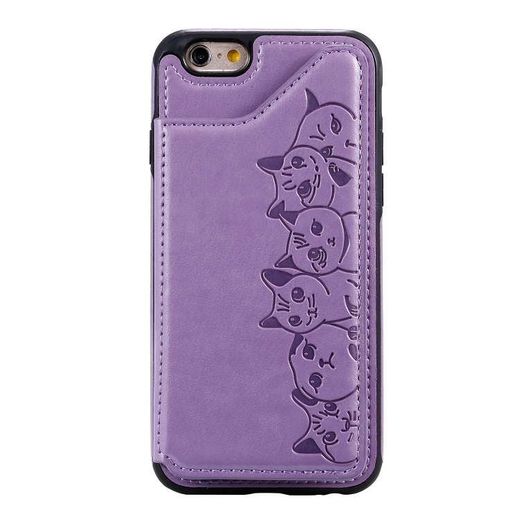 Funda Protectora Six Cats para iPhone 6 con Patrón en Relieve Soporte Ranuras para Tarjetas y Marco de Fotos (Púrpura)