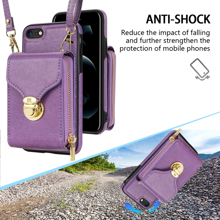 Estuche para Teléfono iPhone 6S / 6 con Billetera y Tarjeta Hardware con Cremallera (Púrpura)