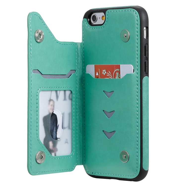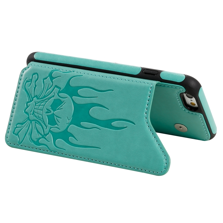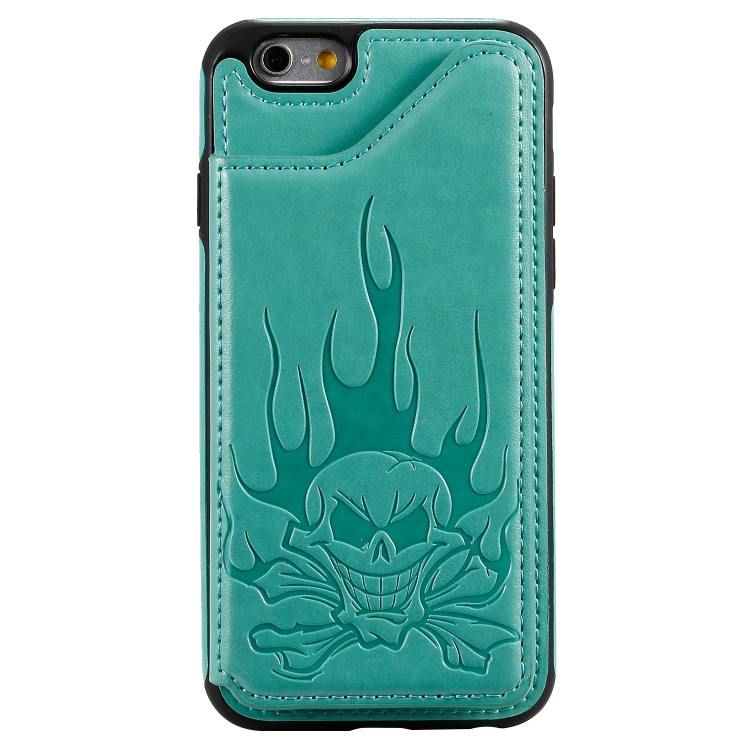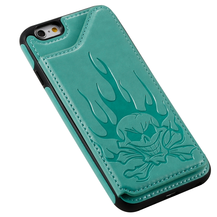 Estuche protector para iPhone 6S / 6 Skull Head con soporte, ranuras para tarjetas y billetera (Verde)