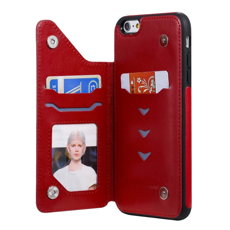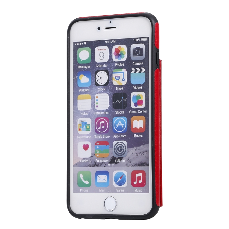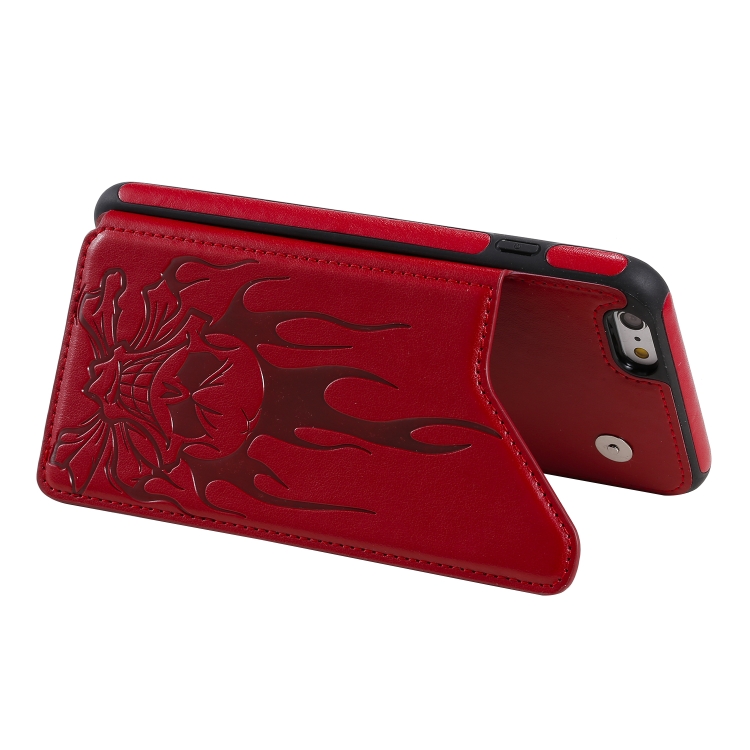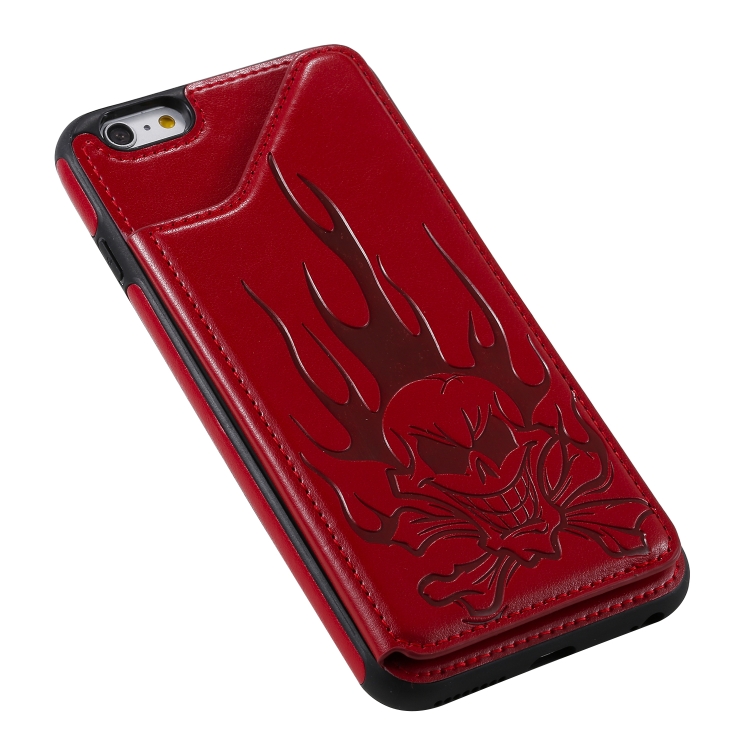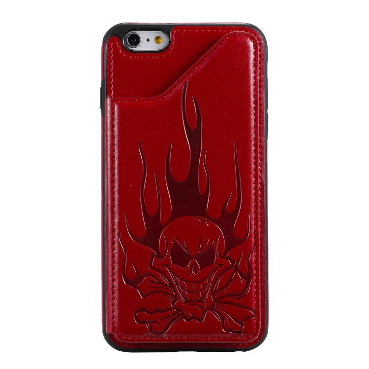 Estuche protector para iPhone 6S Plus y 6 Plus Skull Head con soporte y ranuras para tarjetas y billetera (Rojo)