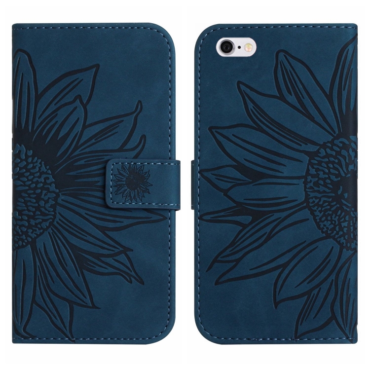 Funda para iPhone 6S Plus Skin Feel Sun Flower Pattern Flip de Cuero con Cordón (Azul Tinta)