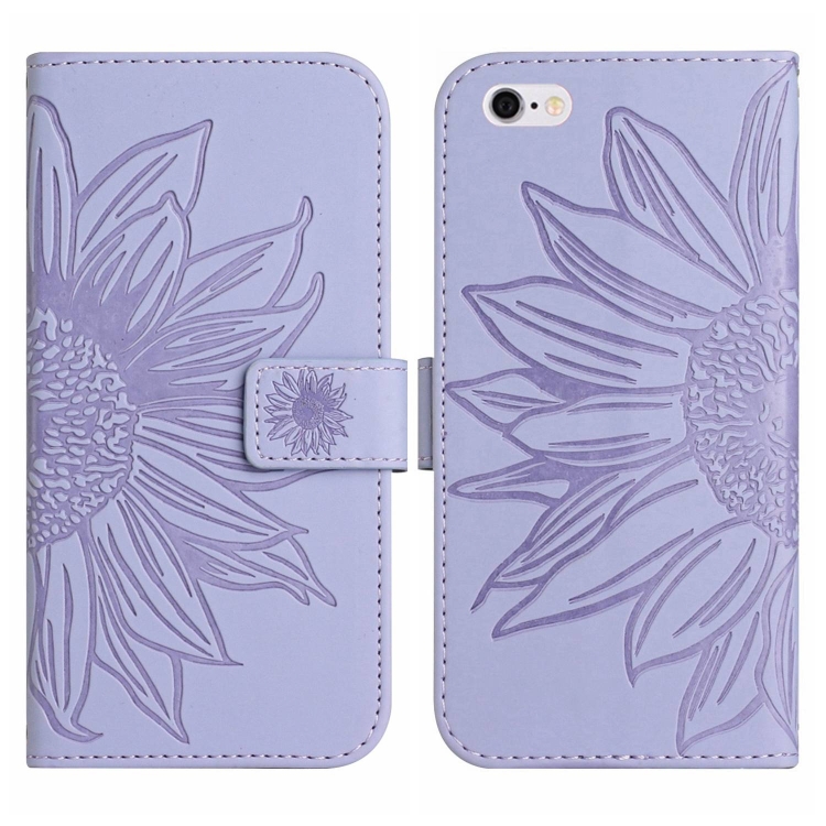 Funda Flip de Cuero para iPhone 6S Plus Skin Feel Sun Flower Pattern con Cordón (Púrpura)