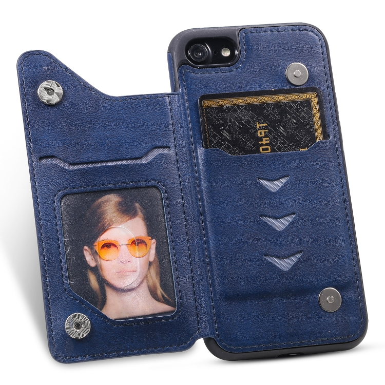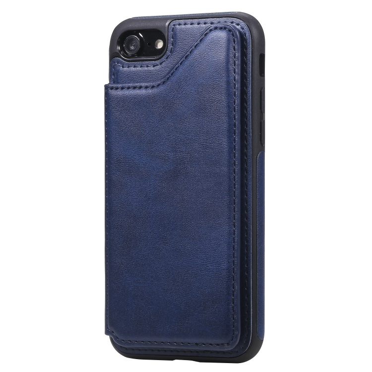 Funda Protectora para iPhone 7/8 con Textura de Pantorrilla, Soporte, Ranuras para Tarjetas y Marco (Azul)
