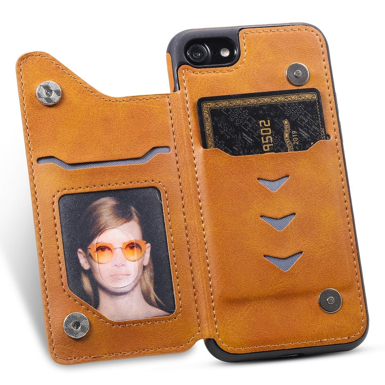Funda Protectora iPhone 7/8 Textura Pantorrilla Soporte Ranuras Tarjetas (Marrón)