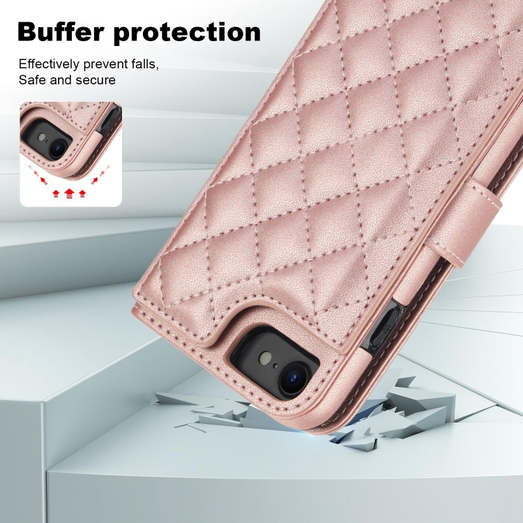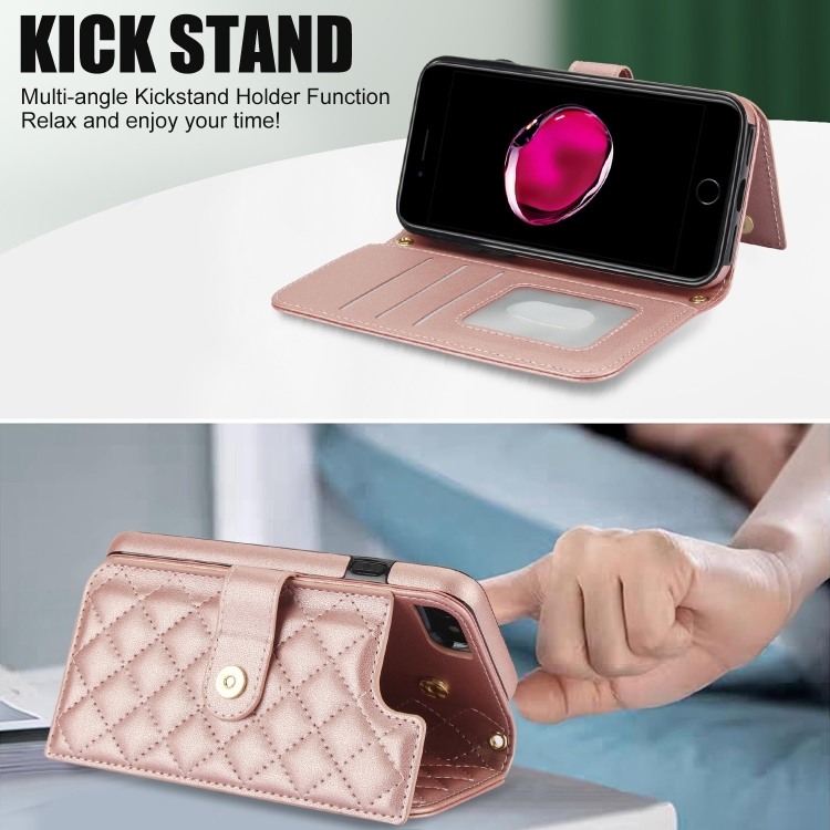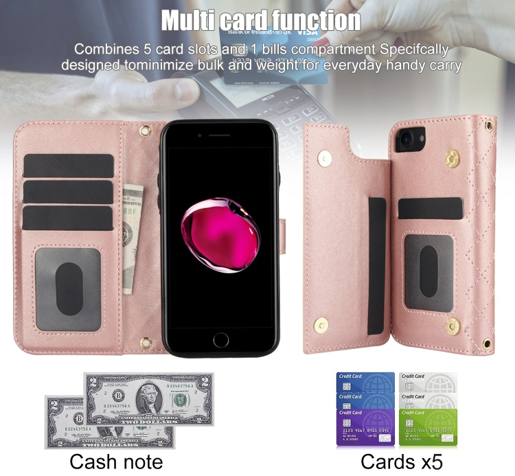 Funda para iPhone 7/8/Se 2022 Cruzada de Cuero Rómbico Multifunción (Oro Rosa)