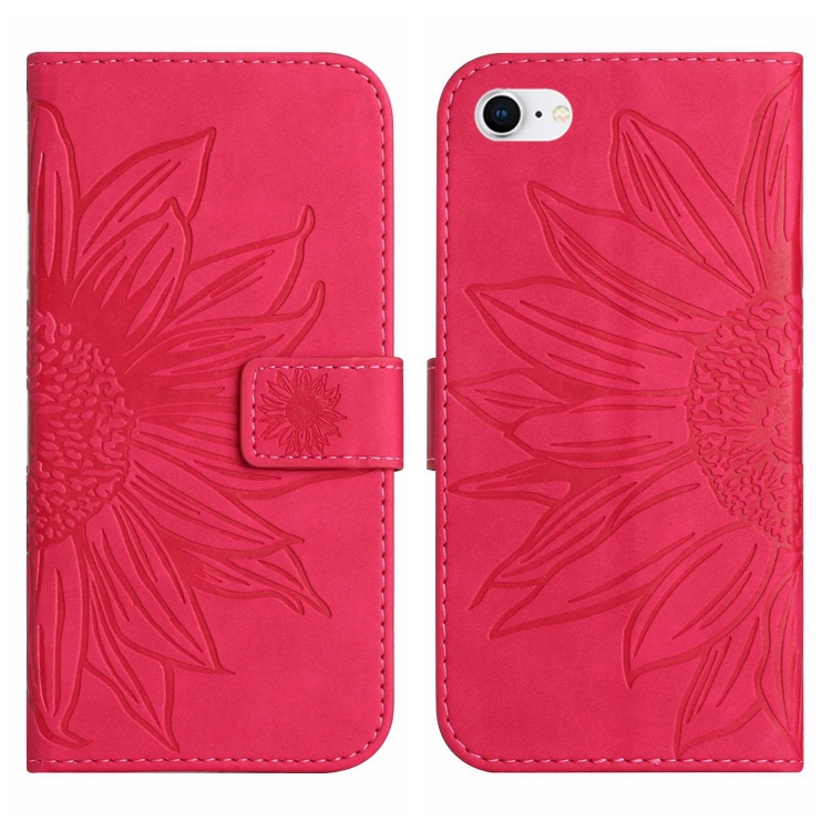 Funda de Cuero Flip para iPhone 7/8 Skin Feel Sun Flower Pattern con Cordón (Rose Red)