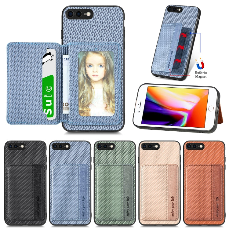 Caja de teléfono para iPhone 7 Plus y 8 Plus con bolsa de tarjeta magnética de fibra de carbono (Verde)