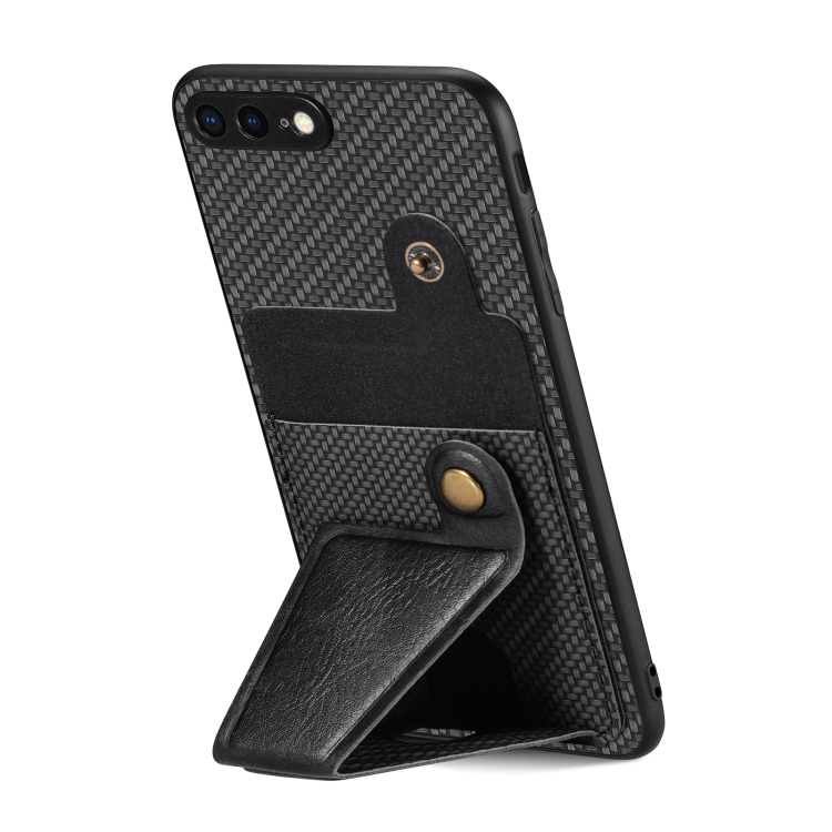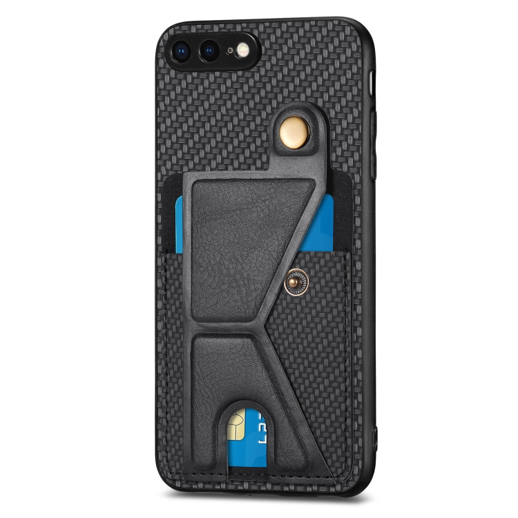 Funda Cartera para iPhone 7 Plus 8 Plus Fibra de Carbono Flip Card con Soporte en Forma de K (Negro)