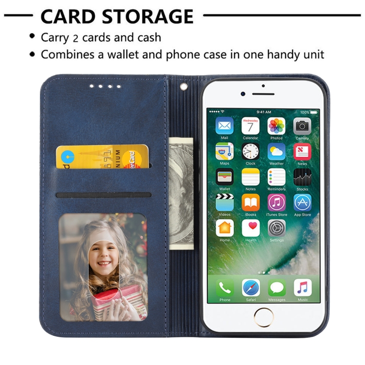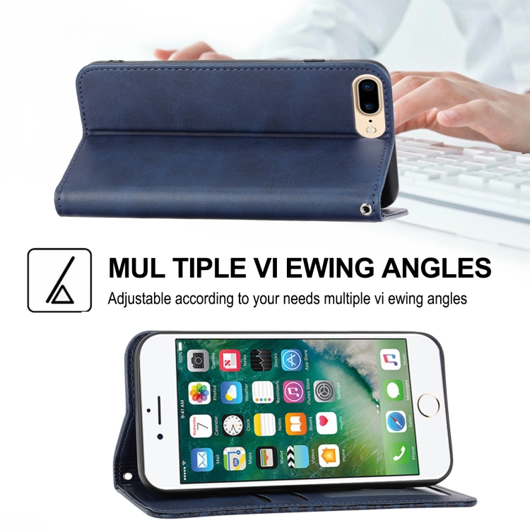 Funda para Teléfono iPhone 7 Plus 8 Plus Cubic Grid Textura de Becerro Cierre Magnético (Azul)
