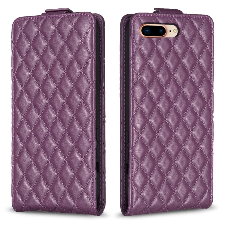 Funda para iPhone 7 Plus / 8 Plus Diamond Lattice Cuero con Tapa Vertical (Púrpura Oscuro)