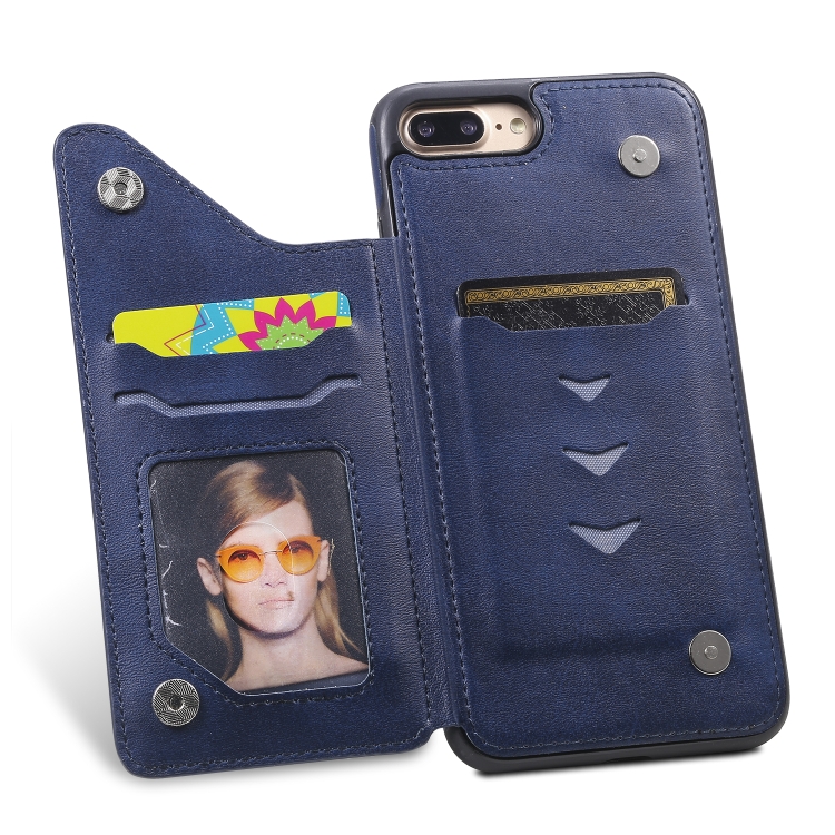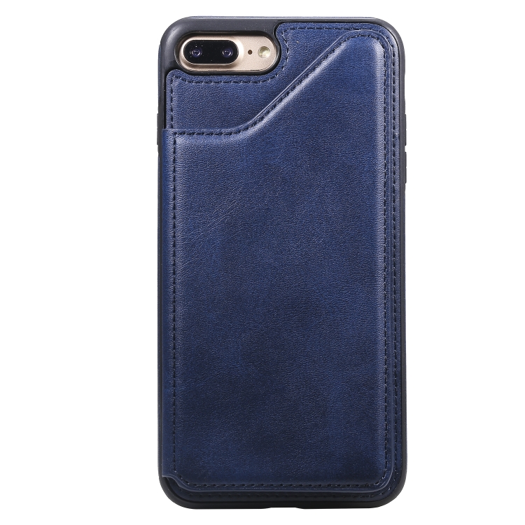 Funda Protectora iPhone 7 Plus 8 Plus Textura Pantorrilla Soporte Ranuras Tarjetas (Azul)