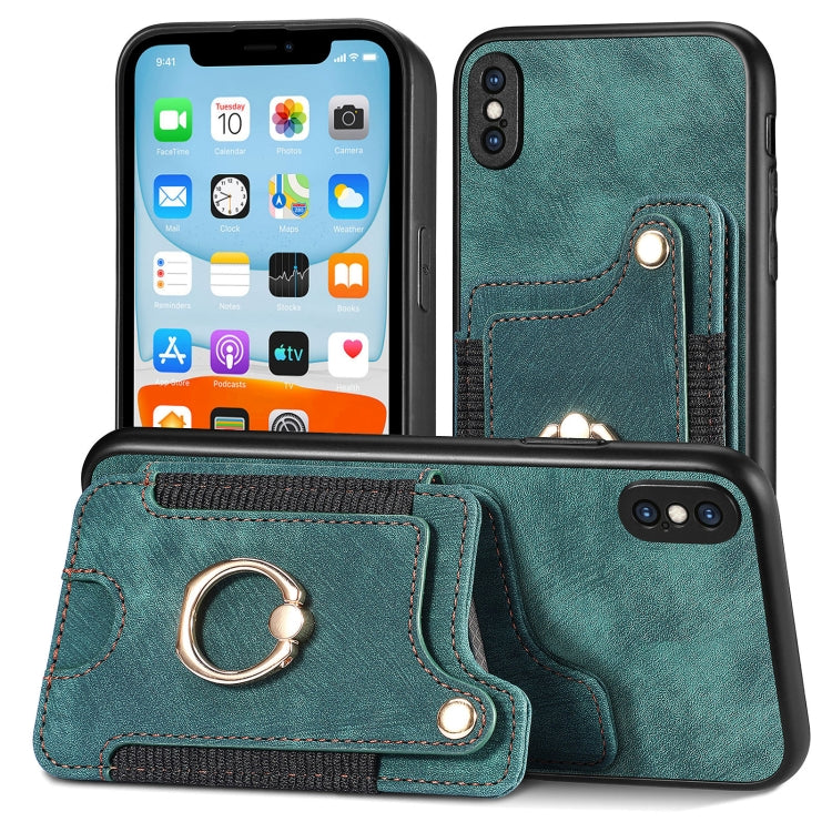 Funda para iPhone 7 Plus y 8 Plus Retro Skin-Feel Ring Multi-Card Wallet (Verde)