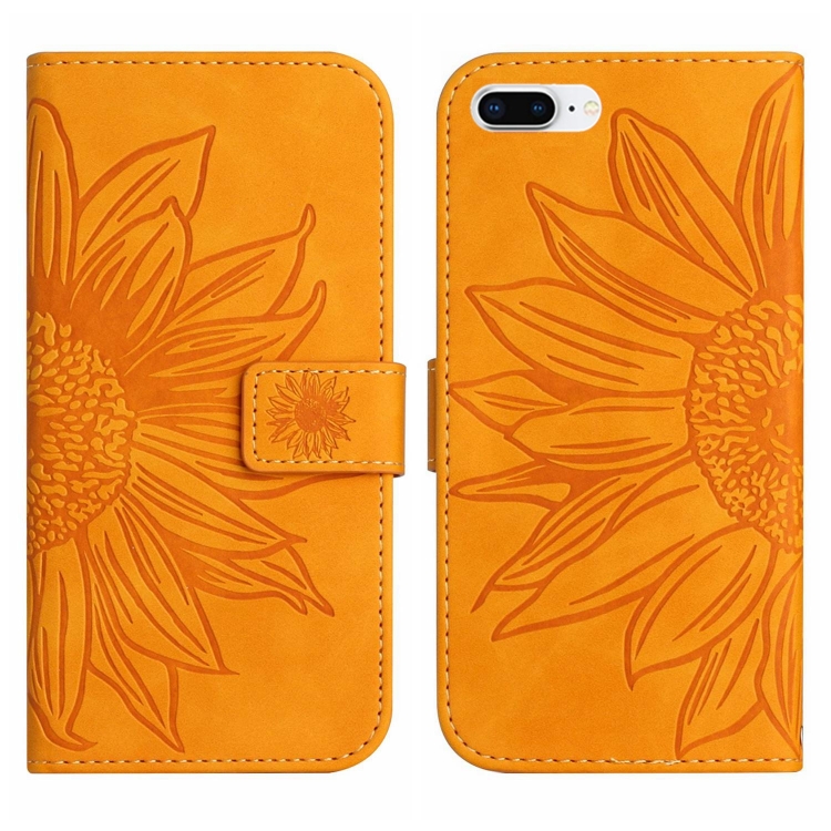 Funda de Cuero Flip para iPhone 7 Plus y 8 Plus Skin Feel Sun Flower con Cordón (Amarillo)