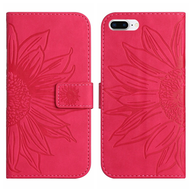 Funda Flip de Cuero para iPhone 7 Plus / 8 Plus Skin Feel Sun Flower Pattern con Cordón (Rose Red)