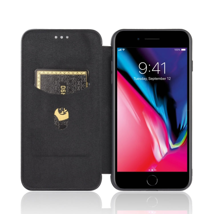 Funda para iPhone 7 Plus y 8 Plus Textura Fibra de Carbono Flip Horizontal Magnético TPU PC Cuero PU con Ranura para Tarjeta (Negro)