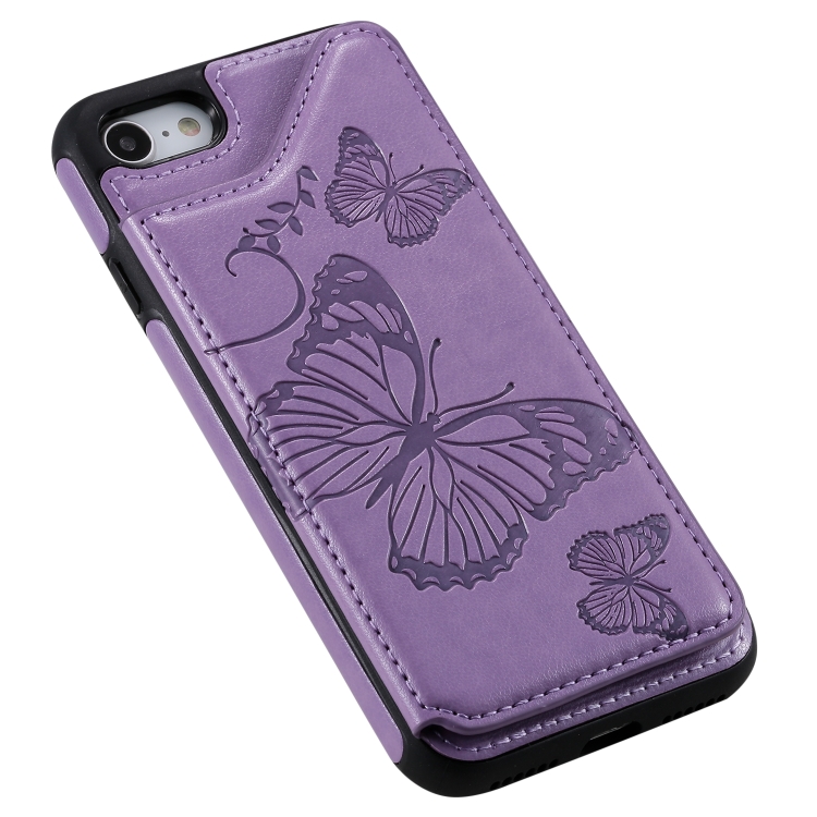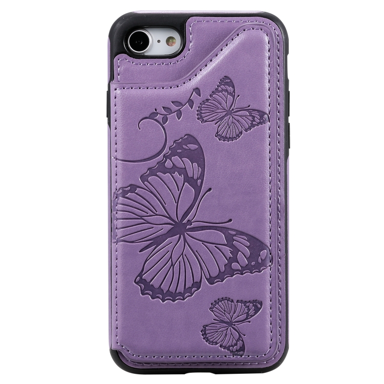 Funda Protectora para iPhone 7 y 8 Patrón Mariposas con Soporte y Ranuras para Tarjetas (Morado)