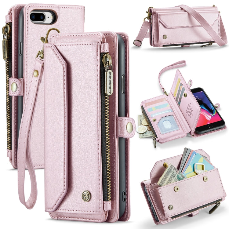 Funda cartera Caseme C36 para iPhone 8 Plus 7 Plus 6 Plus con ranuras para tarjetas y cremallera antirrobo Rfid (Rosa)