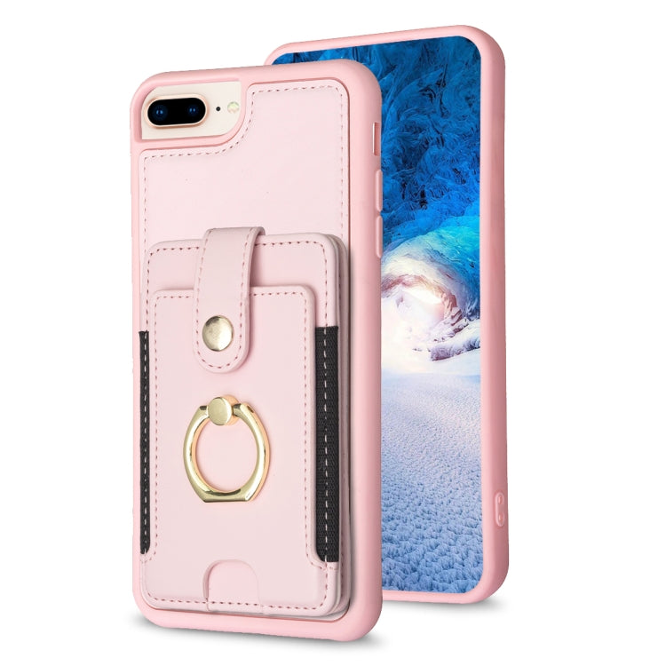 Funda para Teléfono Bf27 para iPhone 8 Plus y 7 Plus con Soporte para Tarjeta y Anillo de Metal (Rosa)