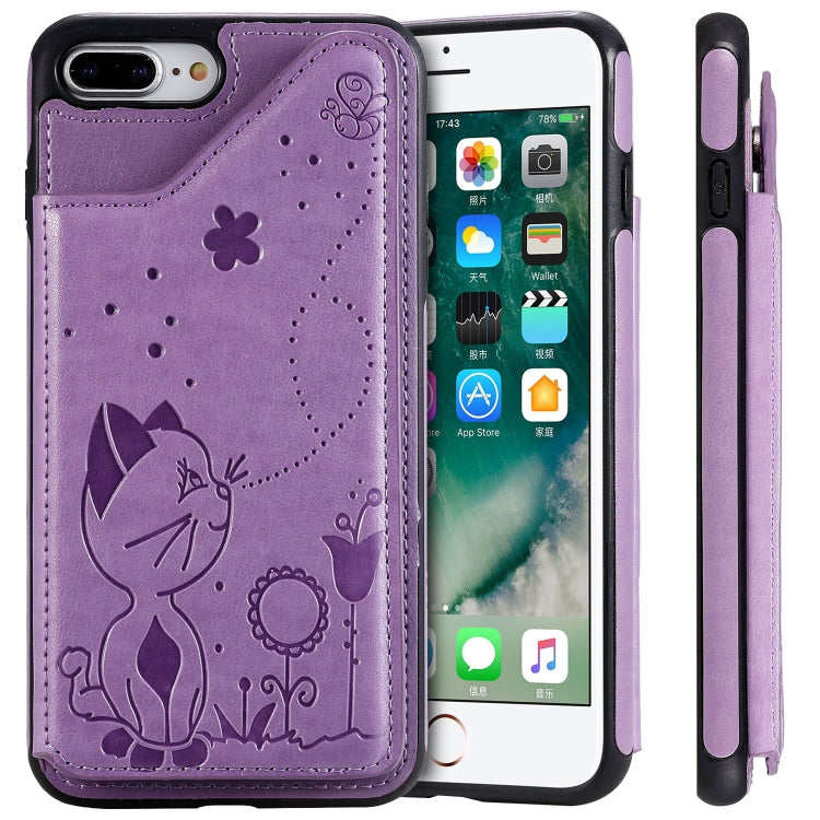Estuche Protector Cat Bee para iPhone 8 Plus y 7 Plus a Prueba de Golpes con Ranuras para Tarjetas y Marco de Fotos (Púrpura)