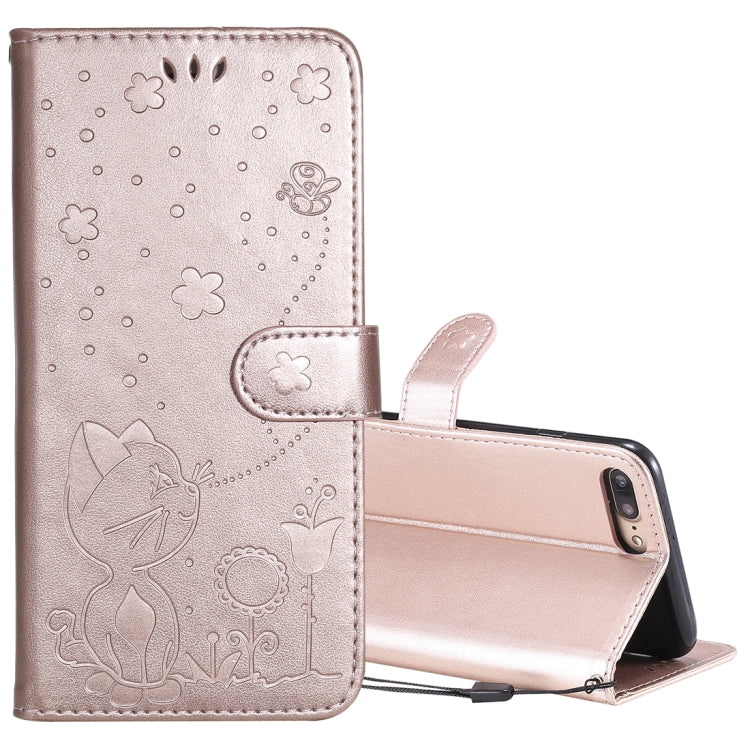 Funda de Cuero Cat Bee para iPhone 8 Plus y 7 Plus con Tapa Horizontal, Soporte, Ranuras para Tarjetas y Billetera (Oro Rosa)