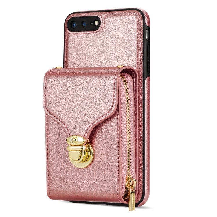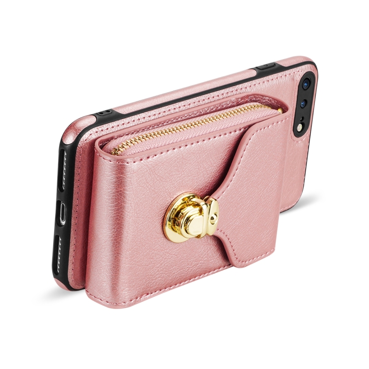 Funda para iPhone 8 Plus 7 Plus con Cremallera Hardware Card Wallet (Rose Gold)