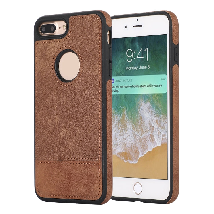 Funda para iPhone 8 Plus/7 Plus Empalme Costura Caja de Teléfono de PU con Recorte Hueco (Marrón)