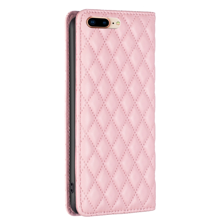 Funda de teléfono para iPhone 8 Plus y 7 Plus con tapa de cuero magnético Diamond Lattice (Rosa)