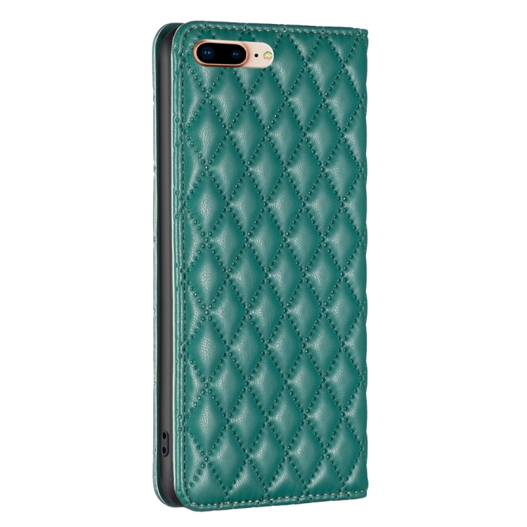 Funda de teléfono para iPhone 8 Plus y 7 Plus con tapa de cuero magnético Diamond Lattice (Verde)