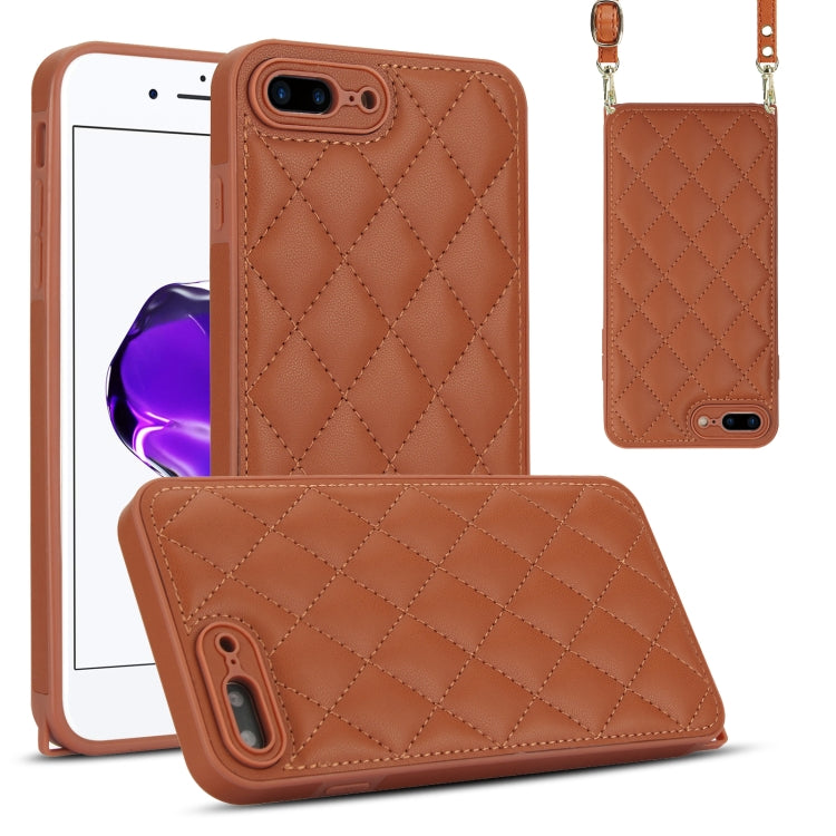Funda para Teléfono iPhone 8 Plus/7 Plus Textura Rómbica y Cordón Doble (Marrón)